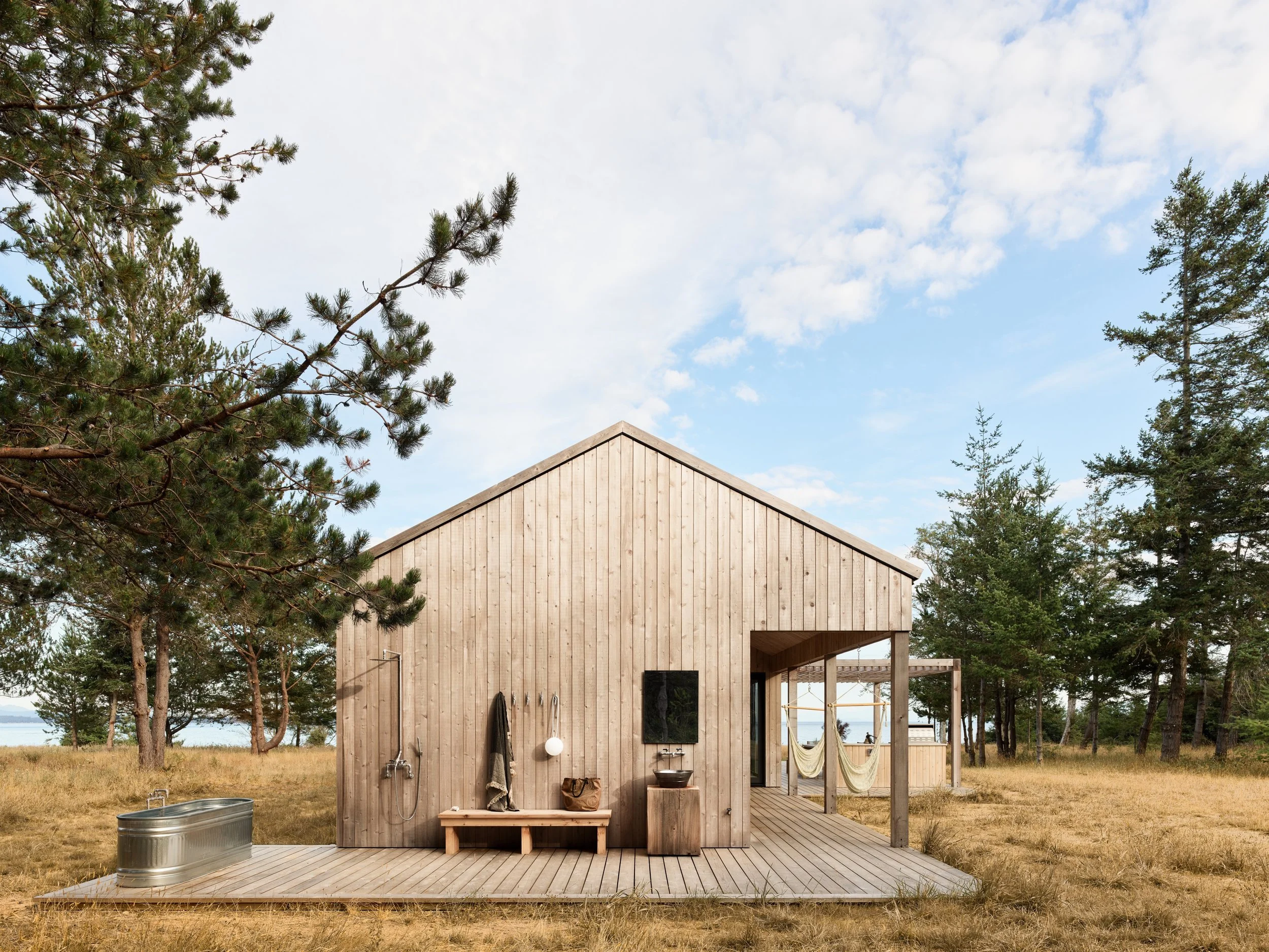 Situated on one of the Discovery Islands up the coast from Vancouver, this new build guest accommodation was influenced by western ranch vernacular. The surrounding flat landscape of the lot reinforced that language, resulting in a low structure that opens up directly to the outdoors from every space. The client’s desire for a pared-back, nomadic escape from the city further broke down the barriers between inside and out, particularly with an outdoor shower and bath, allowing guests to experience a more basic approach to living. The palette was kept minimal and consistent from the exterior to the interior as a way to blur the building’s envelope. The materials were selected to embrace and express exposure to the outdoors, becoming one with the surroundings. Furnishings were approached with durability in mind, to encourage a carefree atmosphere, while evoking familiar forms found on a farmstead. The outcome is a place of gathering, relaxation, and connection with the land.
