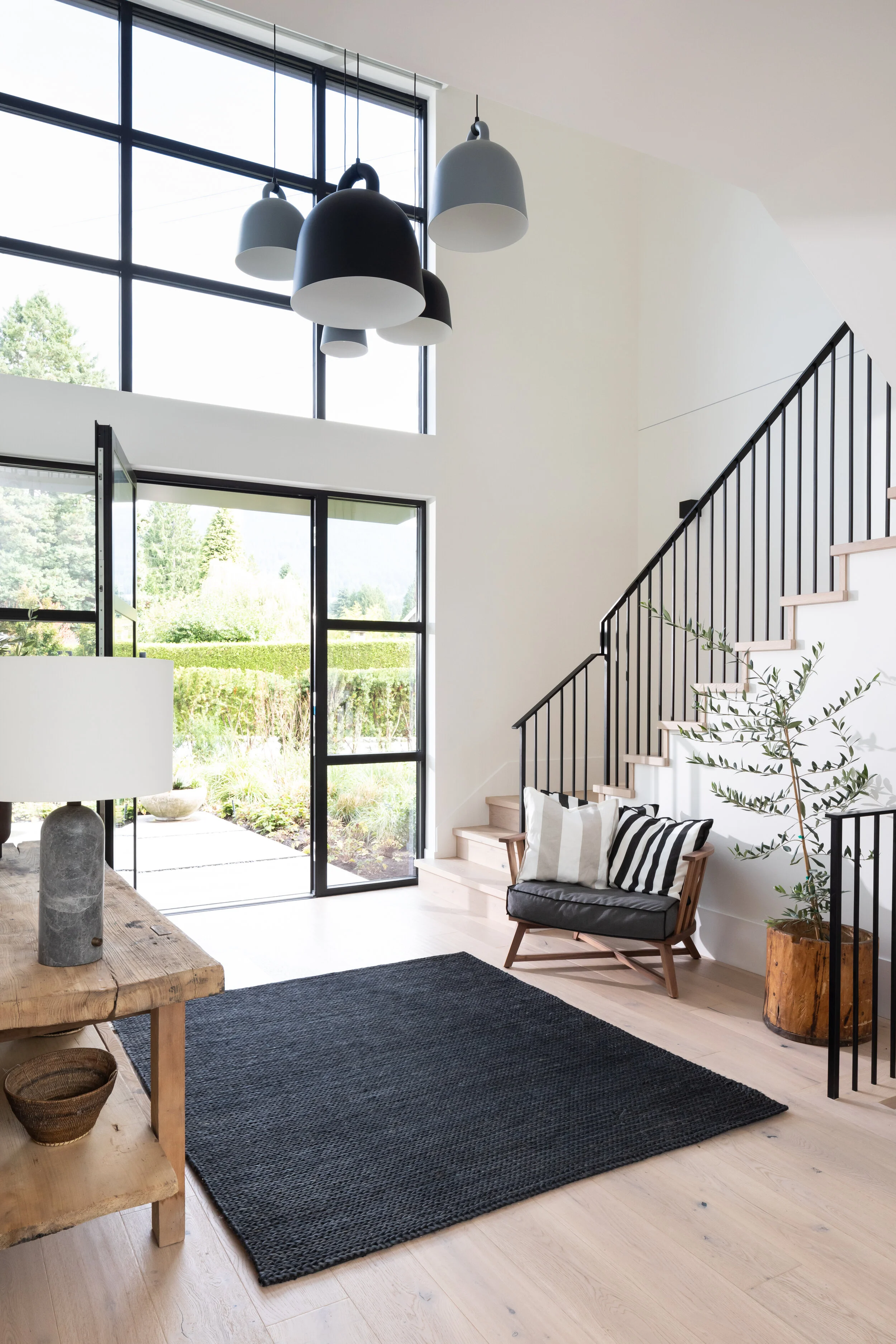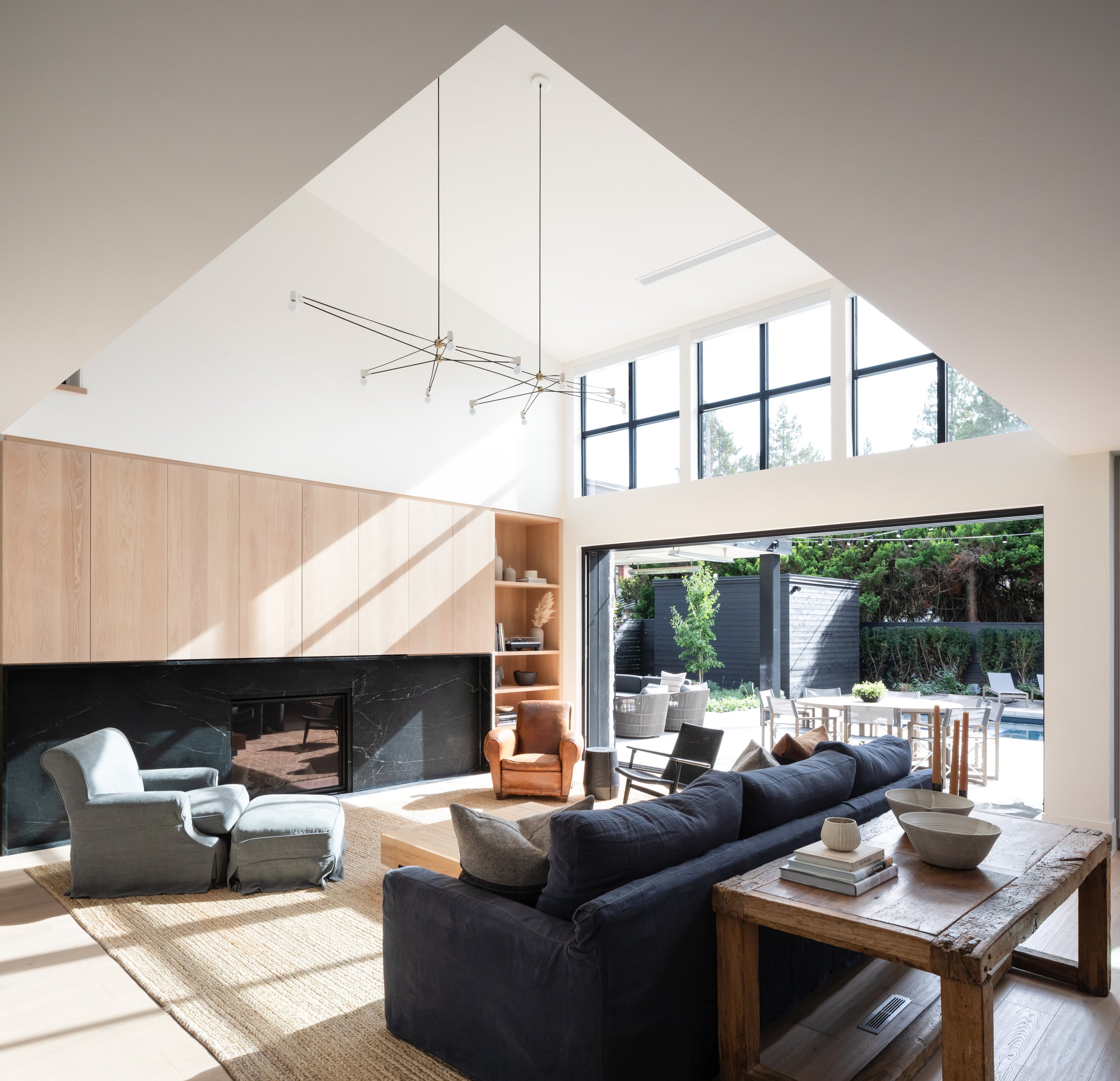 The inspiration for this home was grounded in traditions found in European farmhouse living, balanced with a modern approach. As you enter the home you are welcomed into a double height foyer that connects you with an open plan living room, kitchen and breakfast nook – the gathering spaces for the family. This wide, open room then seamlessly transitions into the backyard through a wall of sliding-pocketed glass panels. This contemporary layout is balanced with a separate formal dining room and private home office. Upstairs, the sleeping and bathing quarters are perched on two sides of a catwalk which bridges the living room and foyer.